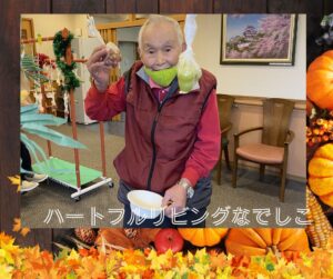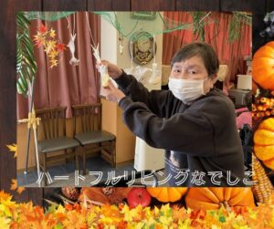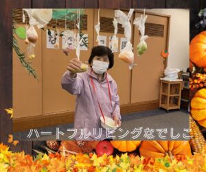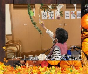 手を伸ばして大きなブドウやリンゴを採るレクリエーションでは、「どれにしようかな?」「こんなのはじめて!」と、皆さま目を輝かせながら参加され、会場は大きな笑顔に包まれました🙌