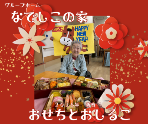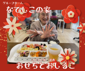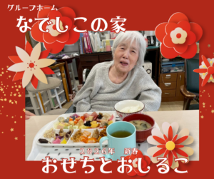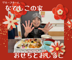 今日の「なでしこの家」は、朝からお正月ムード一色。 彩り豊かなおせち料理を囲み、みんなで新年の抱負を語り合いながら賑やかな食事を楽しみました。一つひとつのお料理に込められた意味を感じながらいただくおせちは、やはり格別です。