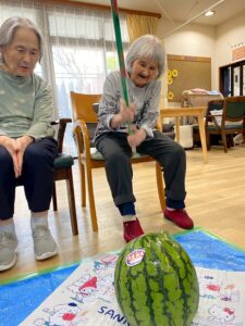 夏といえば、スイカ割🍉なかなか割れなくてみんなで笑いあったり、割れたすいかを美味しそうに食べている顔を眺めたり。